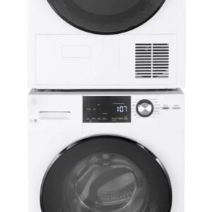 GE – 2.4 Cu. Ft. High Efficiency Stackable Front Load Washer with Steam and Sanitize – White