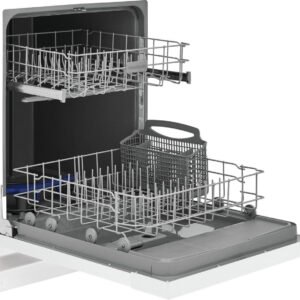 This Frigidaire 24″ built-in dishwasher offers efficient cleaning and energy-saving features to simplify your kitchen routine. With a 5-level wash