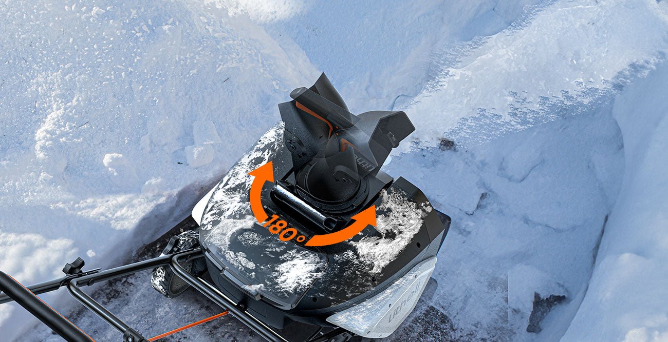 Equipped with a 180 rotating chute, this snow blower allows for flexible snow discharge, easily directing the snow away to your desired area.