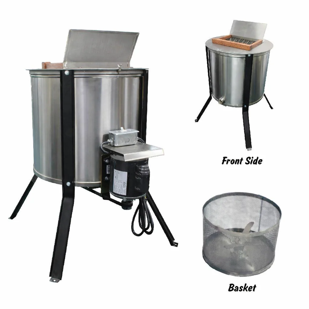 Separate your honey and wax cappings with ease! This machine is great for those with 100 hives or less. The 20 gauge (0.953 mm) stainless steel tank is 20″ (50.80 cm) in diameter, and 32″ (81.28 cm) high. The bottom is die formed and conical for ease of side draining. The removable capping basket is laser cut and constructed from 18 gauge perforated stainless steel. 110 volt.